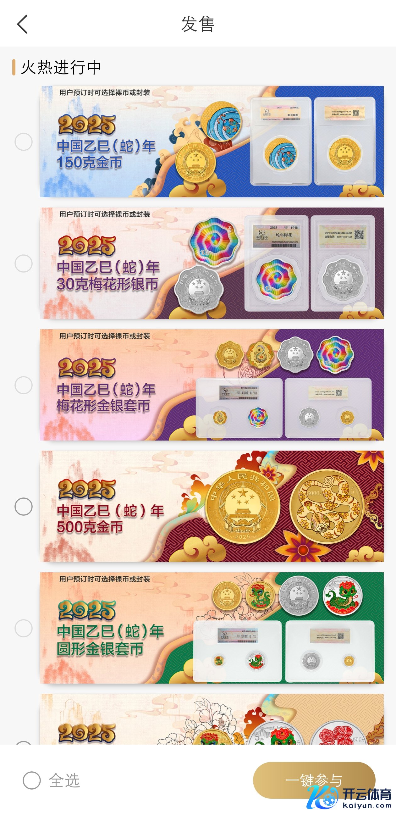 记者登录金币云商app 发现,该套操心币现在仍可不息预约,纯金币价钱崇高。500克圆形金质操心币售价43.8万元,面额5000元,已有30东谈主报名。梅花形金银套币售价1.366万元,其中金币含15克纯金,面额200元;银币含30克纯银,面额10元。