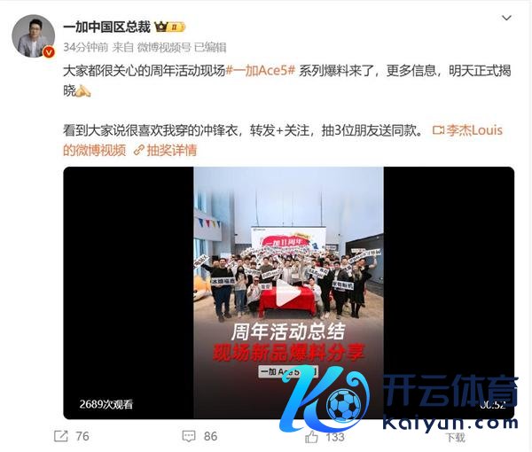 快科技12月18日音书,一加中国区总裁李杰预报开云体育,一加Ace 5系列将于未来厚爱公布发布时辰,在预热视频中,李杰表露,一加Ace 5系列是本年最香的骁龙8至尊版手机。